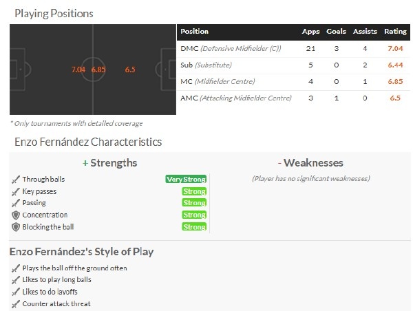 恩佐的特点是处理球聪明,也能成为后腰麦卡利斯特和前场组织者阿尔瓦雷斯之间的最佳衔接。