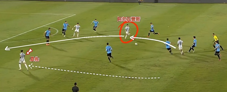 从上一场客场与乌拉圭的世预赛可以看到,阿尔瓦雷斯被当做一个老年版、不过人的梅西来使用。