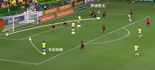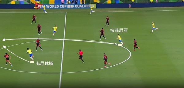 不过上一场面对哥伦比亚,韦尼休斯在一开场就利用速度前插后制造点球,送出直塞球的,恰恰是回撤的拉菲尼亚。