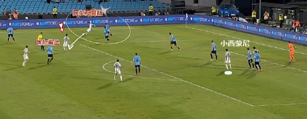 包括与乌拉圭比赛中的唯一进球,就是阿尔瓦雷斯往边路走,吸引2人防守注意力后转身回做,给到禁区前被放空的阿尔马达。