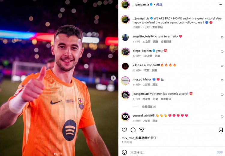 2025-11-23 16:01:28霍安·加西亚纪念诺坎普首秀:回家取得大胜,很高兴再次捍卫球门